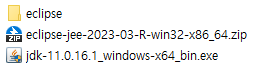 util 폴더 안에는 이런 식으로 jdk와 eclipse 파일이 있으면 된다. eclipse 폴더는 압축파일을 풀면 생기는 것이니 아직 풀지 않았다면 지금 풀어두자.