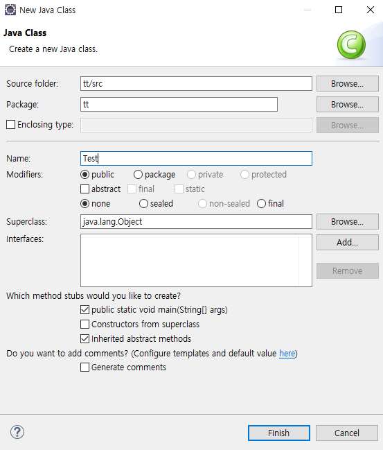 이름을 정하고 Finsh 버튼을 눌러준다