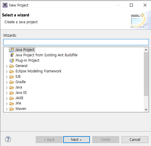Java Project를 를 누르고 Next